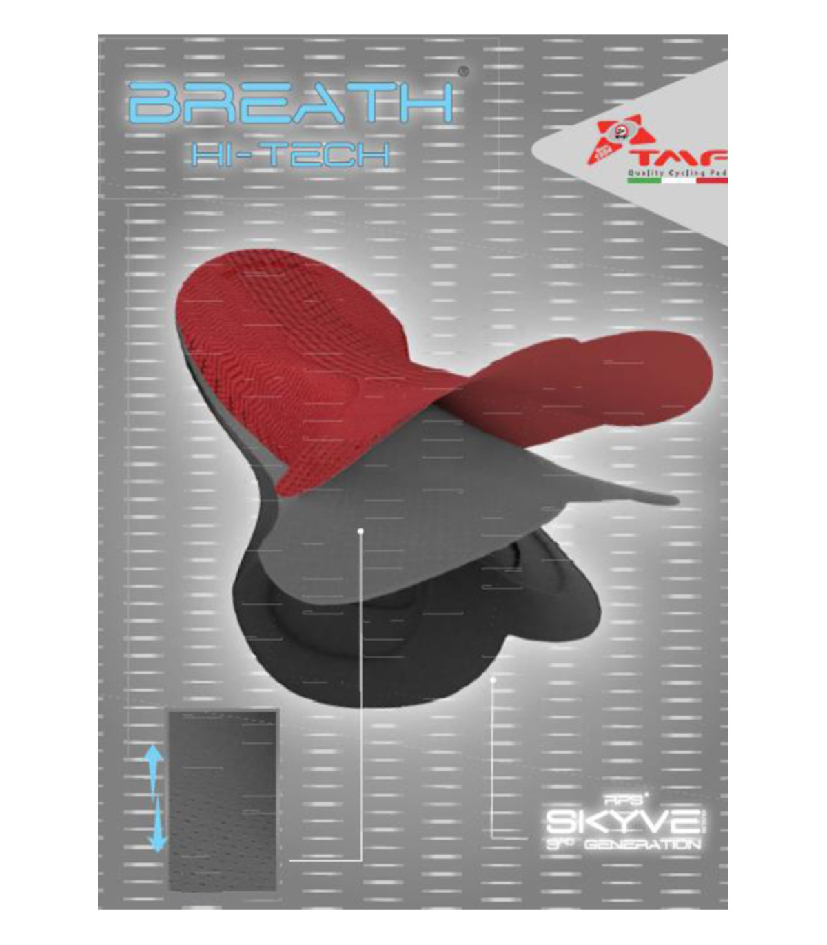 SKY est un produit créé avec la technique SKIVING qui garantit un bien-être important et une adaptation ergonomique au corps du cycliste, favorisant une concentration à 100% sur les performances. Le confort maximum de Skiving, dans tous les domaines d'application, minimise la friction aux points critiques, éliminant tous les problèmes d'appuis et les rougeurs.